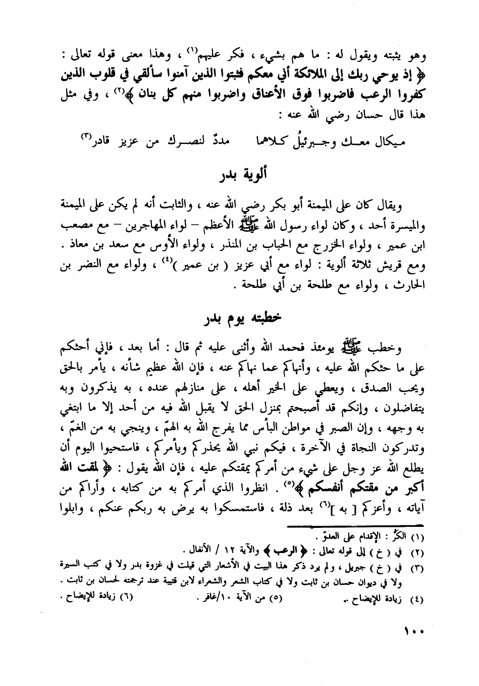 إِذْ يُوحِي رَبُّكَ إِلَى الْمَلائِكَةِ أَنِّي مَعَكُمْ فَثَبِّتُوا الَّذِينَ آمَنُوا سَأُلْقِي فِي قُلُوبِ الَّذِينَ كَفَرُوا الرُّعْبَ فَاضْرِبُوا فَوْقَ الْأَعْناقِ وَاضْرِبُوا مِنْهُمْ كُلَّ بَنانٍ [ (2) ] ، وفي مثل هذا قال حسان رضي اللَّه عنه: