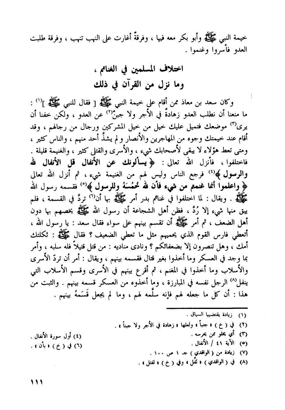 [ (7) ] زيادة من (الواقدي) ج 1 ص 100.