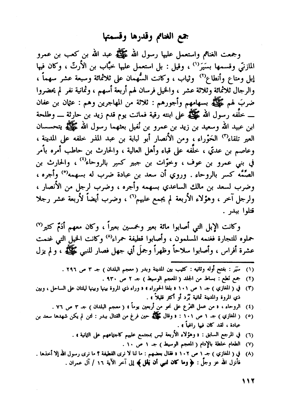 [ (8) ] في (المغازي) ج 1 ص 102 «فقال بعضهم: ما لنا لا نرى القطيفة؟ ما نرى رسول اللَّه إلا أخذها.