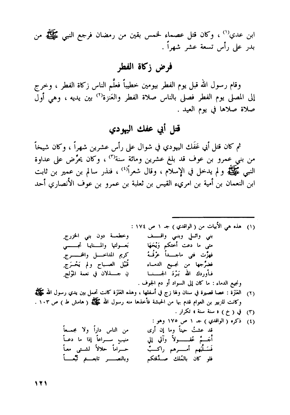 [ (1) ] هذه هي الأبيات من (الواقدي) ج 1 ص 174: