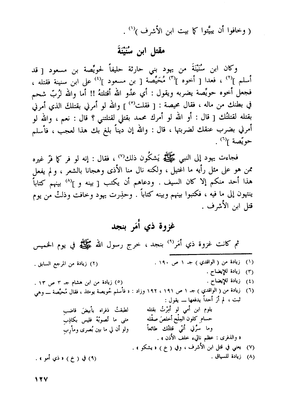 [ (1) ] زيادة من (الواقدي) ج 1 ص 190.