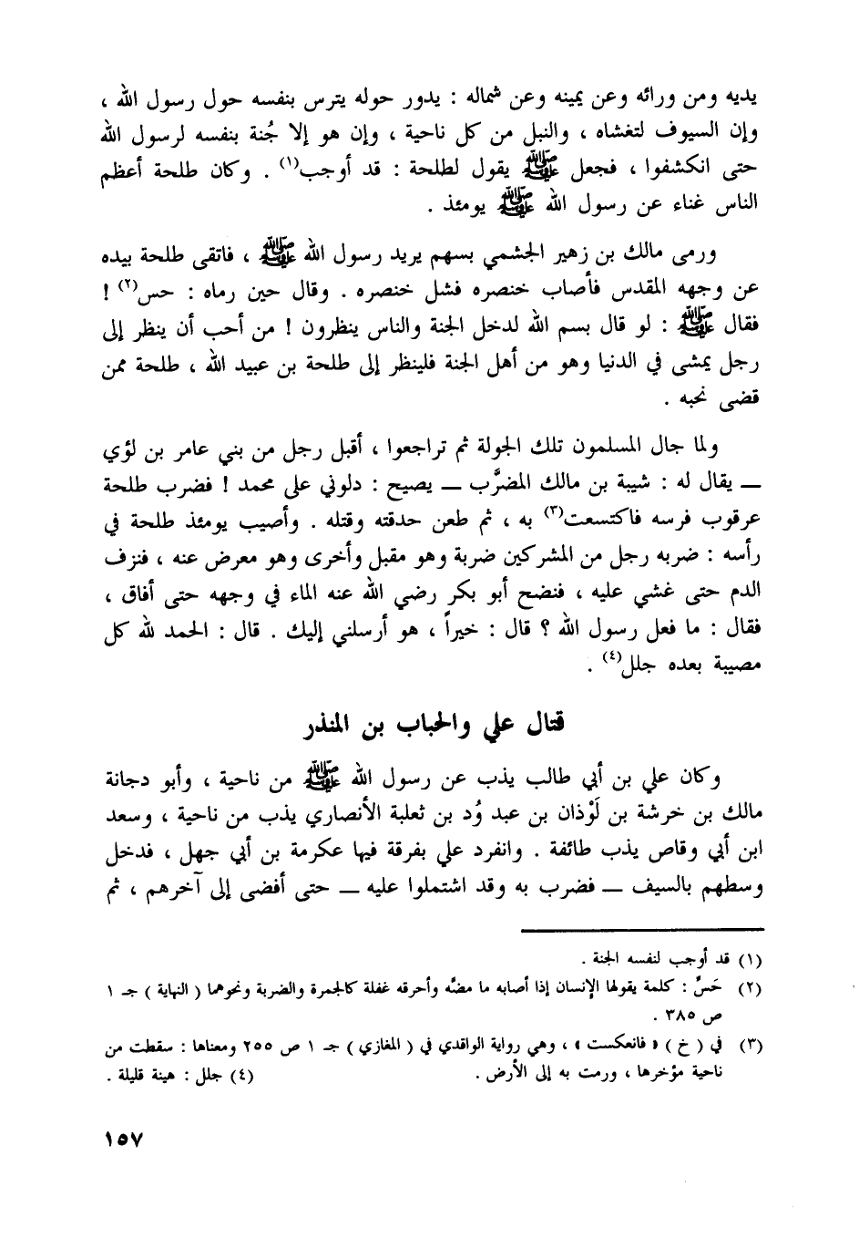 [ (1) ] . وكان طلحة أعظم الناس غناء عن رسول اللَّه صلّى اللَّه عليه وسلّم يومئذ.