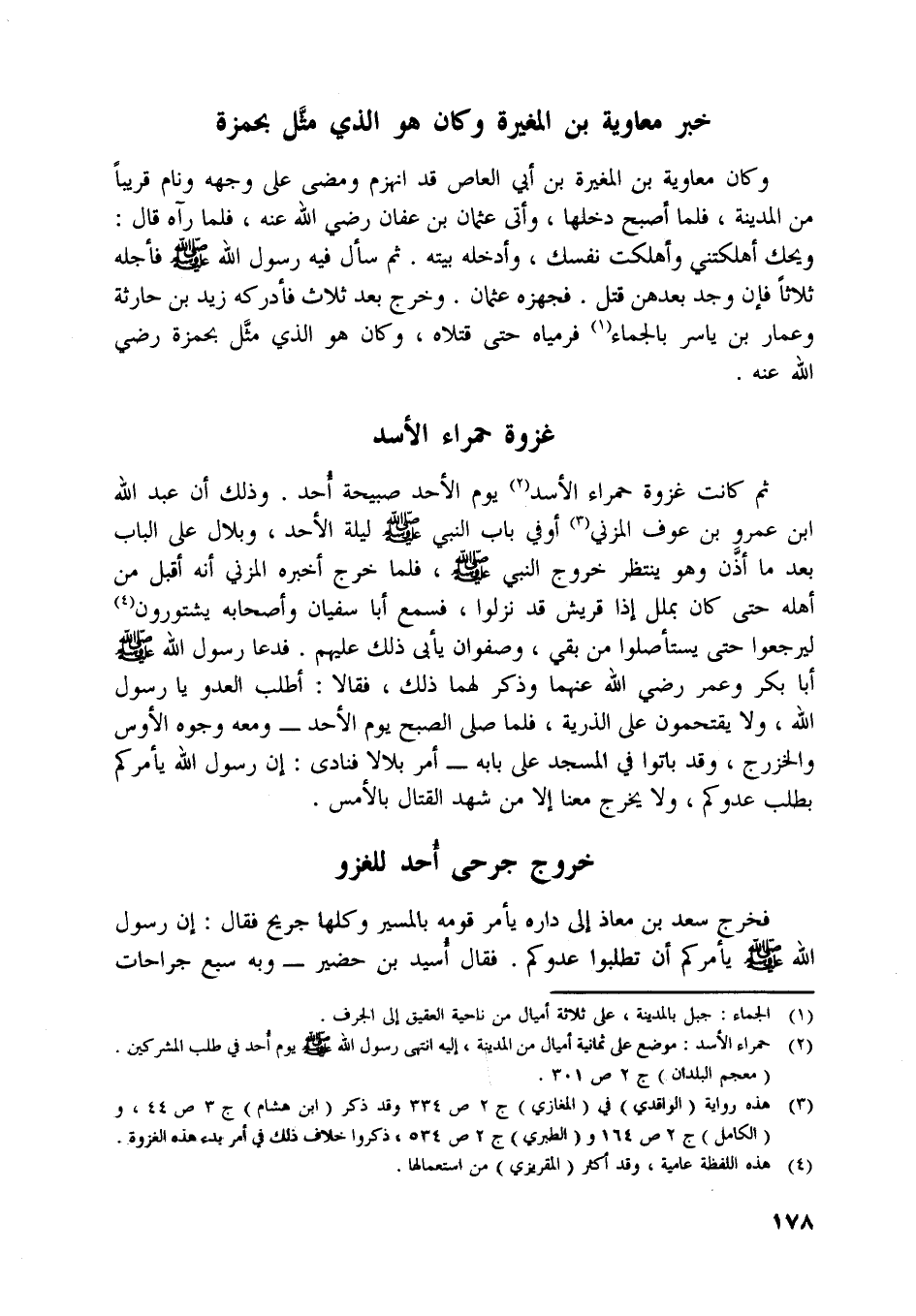 [ (2) ] حمراء الأسد: موضع على ثمانية أميال من المدينة، إليه انتهى رسول اللَّه صلّى اللَّه عليه وسلّم يوم أحد في طلب المشركين.