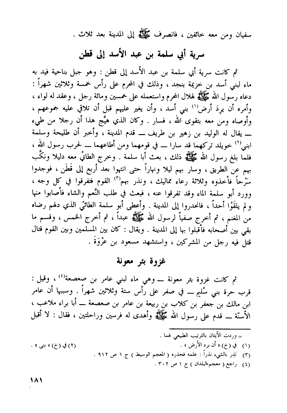 ثم كانت سرية أبي سليمة بن عبد الأسد إلى قطن: وهو جبل بناحية فيد به ماء لبني أسد بن خزيمة بنجد، وذلك في المحرم على رأس خمسة وثلاثين شهرا: