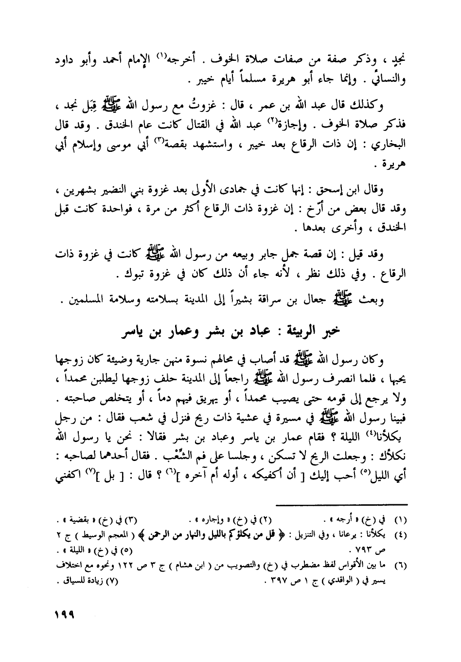 [ (6) ] ما بين الأقواس لفظ مضطرب في (خ) والتصويب من (ابن هشام) ج 3 ص 122 ونحوه مع اختلاف يسير في (الواقدي) ج 1 ص 397.