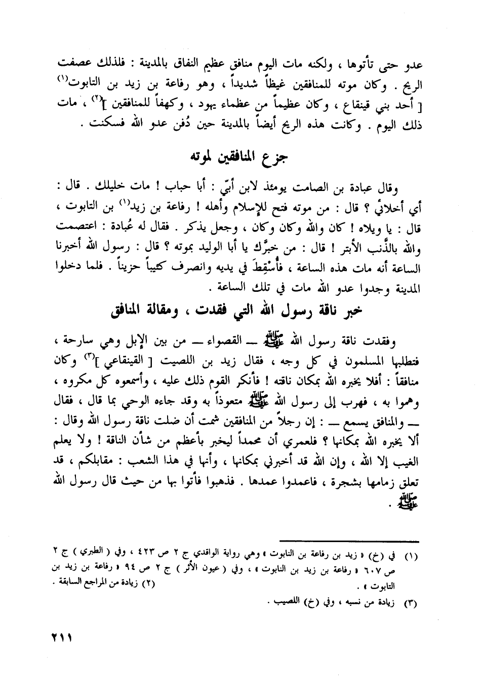[ (1) ] في (خ) «زيد بن رفاعة بن النابوت» وهي رواية الواقدي ج 2 ص 423، وفي (الطبري) ج 2 ص 607 «رفاعة بن زيد بن النابوت» ، وفي (عيون الأثر) ج 2 ص 94 «رفاعة بن زيد بن التابوت» .