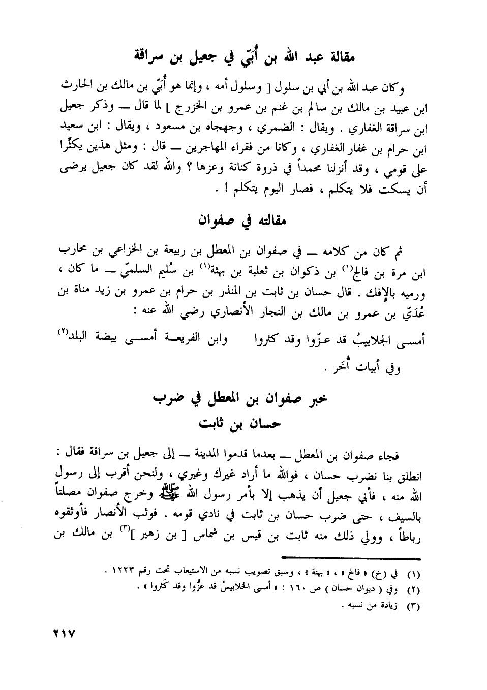 خبر صفوان بن المعطل في ضرب حسان بن ثابت