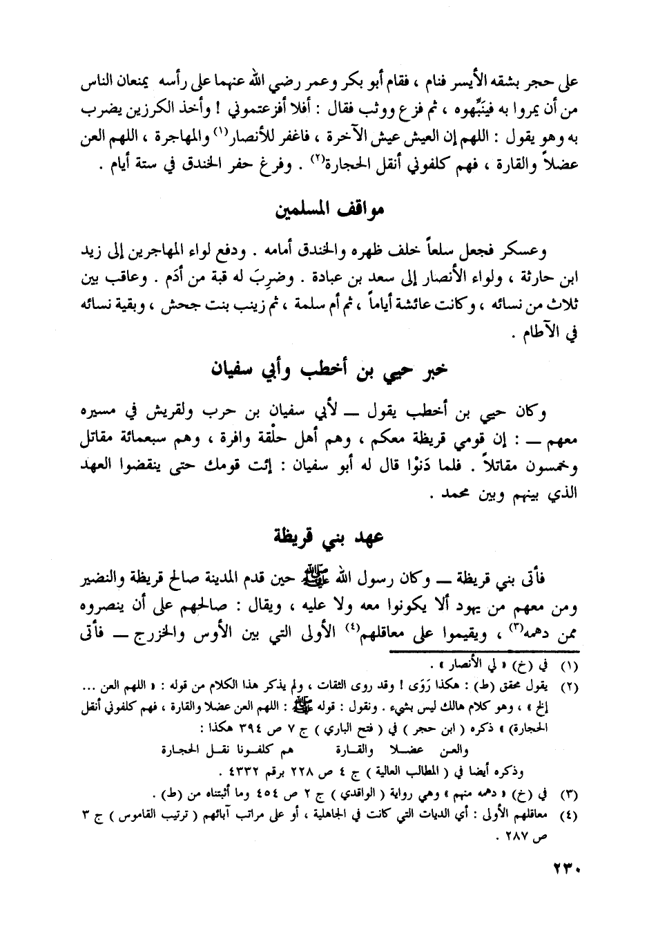 قوله صلّى اللَّه عليه وسلّم: اللَّهمّ العن عضلا والقارة، فهم كلفوني أنقل الحجارة) » ذكره (ابن حجر) في (فتح الباري) ج 7 ص 394 هكذا: