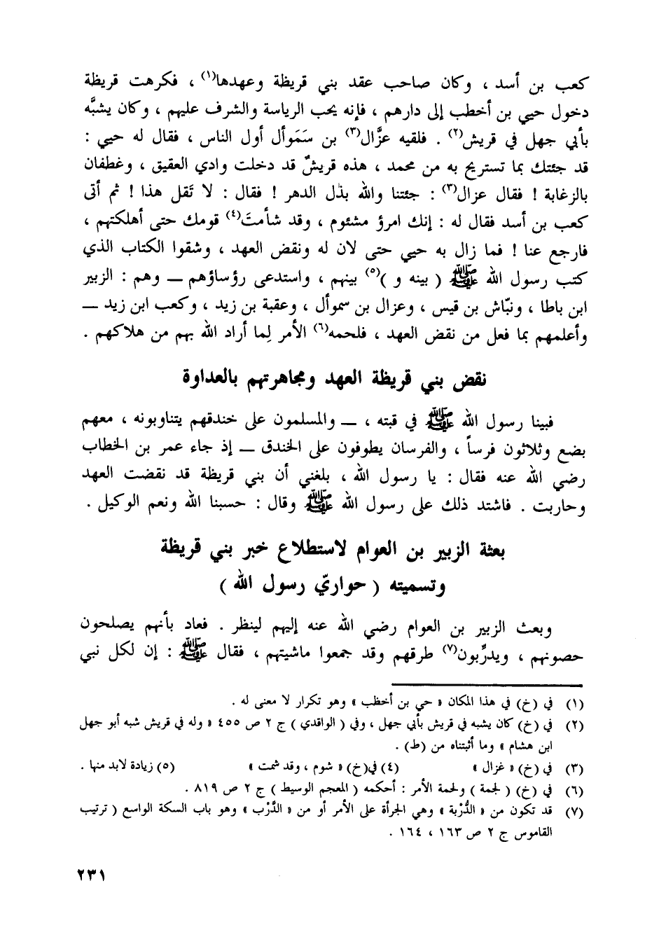 بعثة الزبير بن العوام لاستطلاع خبر بني قريظة وتسميته (حواريّ رسول اللَّه)