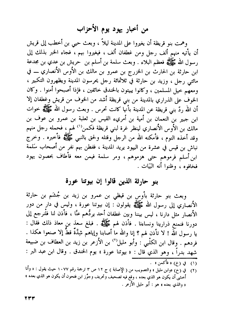 [ (2) ] في (خ) «وابن مليل» والتصويب من (الإصابة) ج 12 ص 3 ترجمة رقم 1077 حيث يقول: «وأنا أخشى أن يكون هو الّذي بعده، وقع فيه تصحيف وتحريف وجوّز ابن فتحون أن يكون هو الّذي بعده» «والّذي بعده» هو: أبو مليل الأزعر.