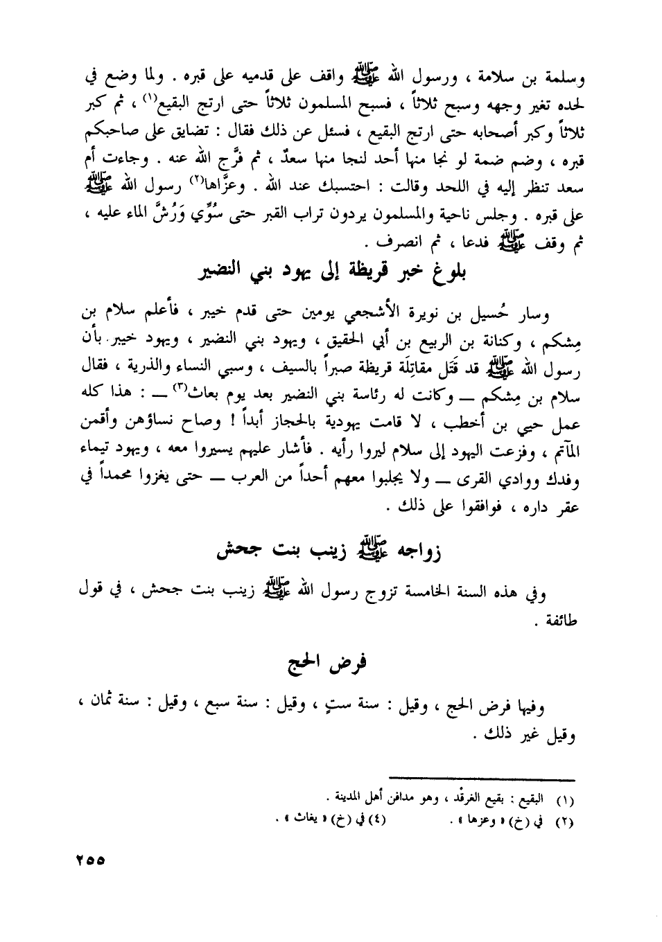 وفي هذه السنة الخامسة تزوج رسول اللَّه صلّى اللَّه عليه وسلّم زينب بنت جحش، في قول طائفة.