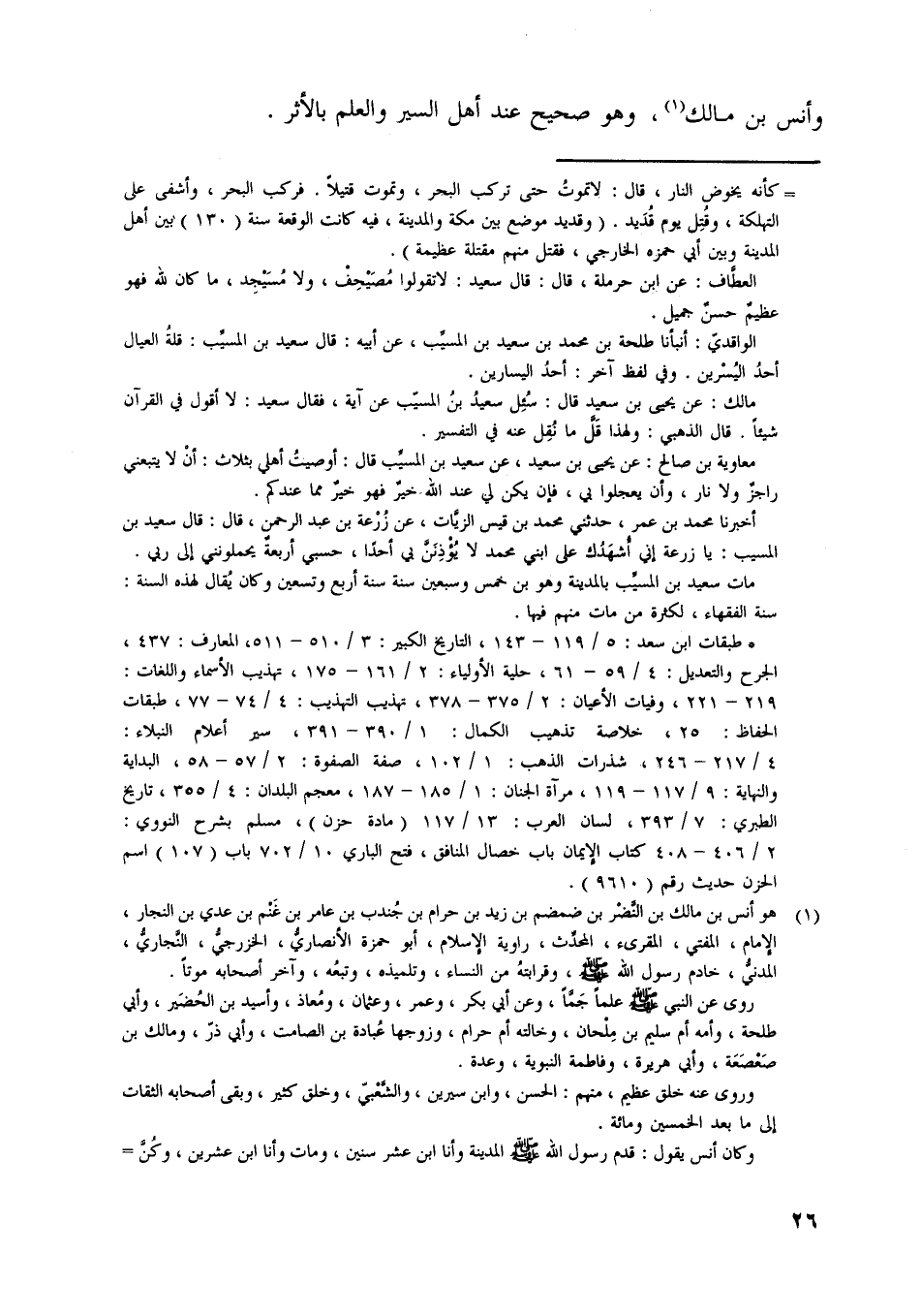 وأنس بن مالك [ (1) ] ، وهو صحيح عند أهل السير والعلم بالأثر.