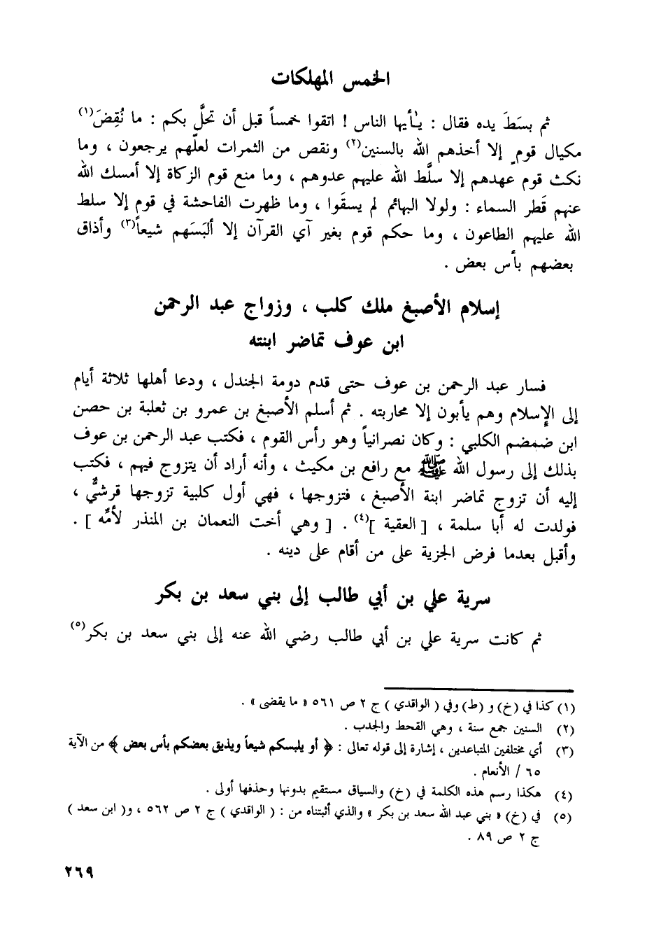 ثم كانت سرية علي بن أبي طالب رضي اللَّه عنه إلى بني سعد بن بكر [ (5) ]