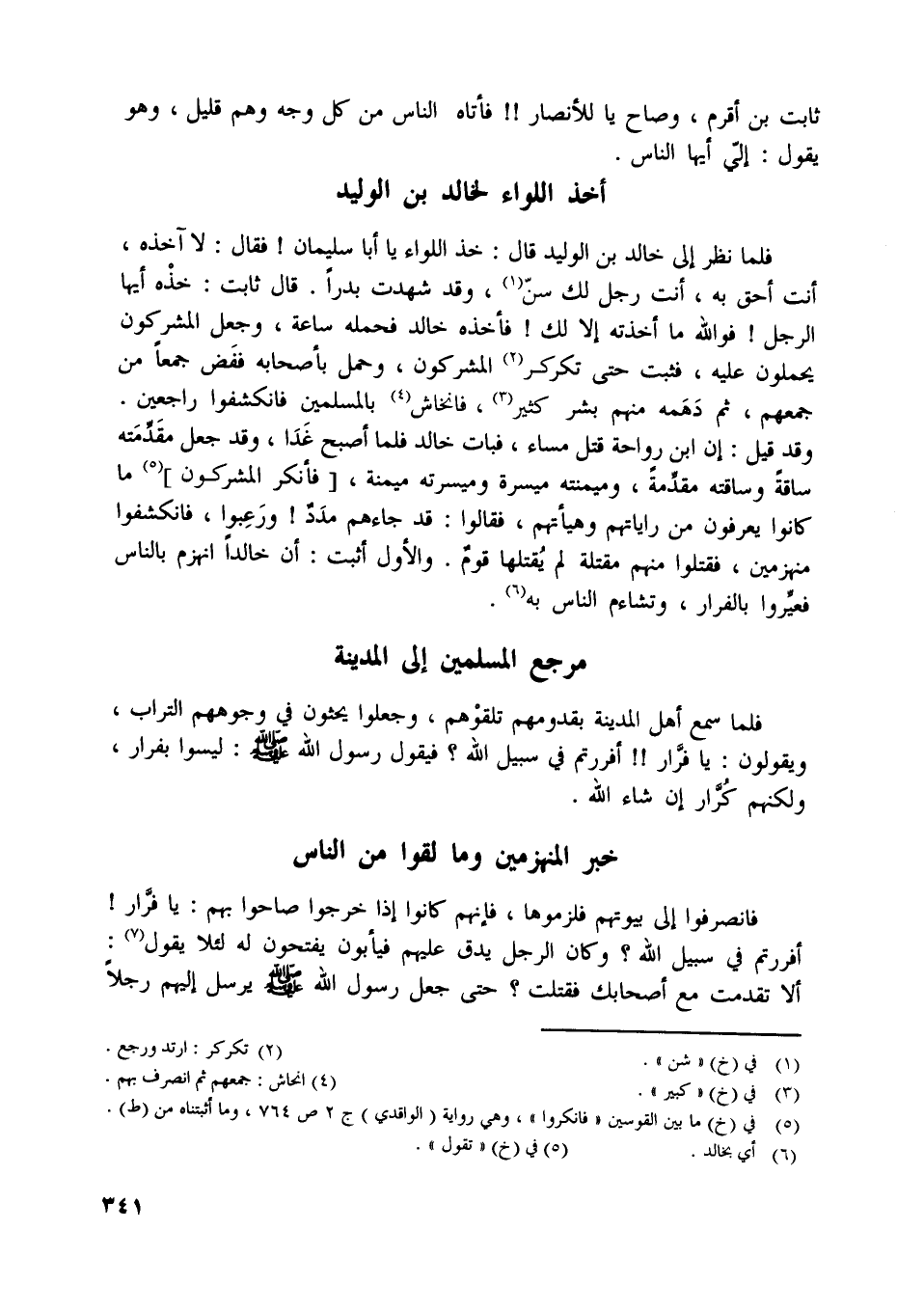 [ (5) ] في (خ) ما بين القوسين «فأنكروا» ، وهي رواية (الواقدي) ج 2 ص 764، وما أثبتناه من (ط) .