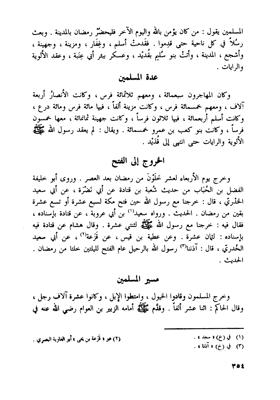 وخرج المسلمون وقادوا الخيول، وامتطوا الإبل، وكانوا عشرة آلاف رجل، وقال الحاكم: اثنا عشر ألفا.