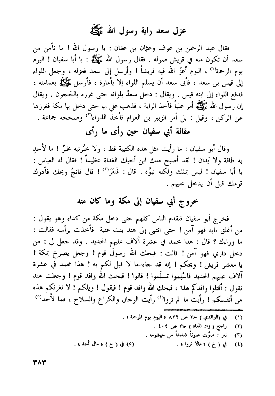 [ (1) ] في (الواقدي) ج 2 ص 822 «اليوم يوم المرحمة» .