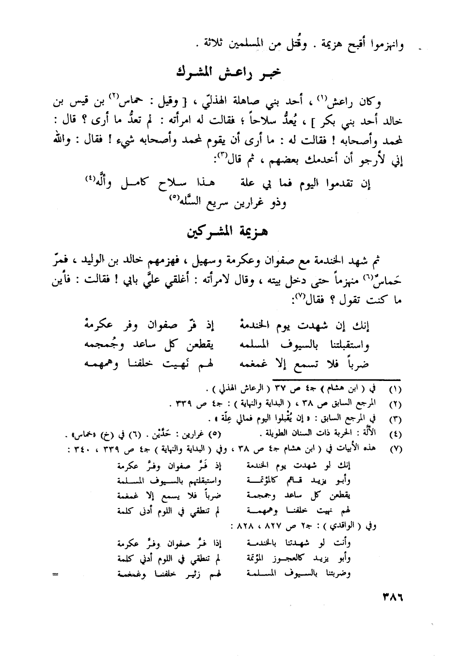 [ (7) ] هذه الأبيات في (ابن هشام ج 4 ص 38، وفي (البداية والنهاية) ج 4 ص 339، 340: