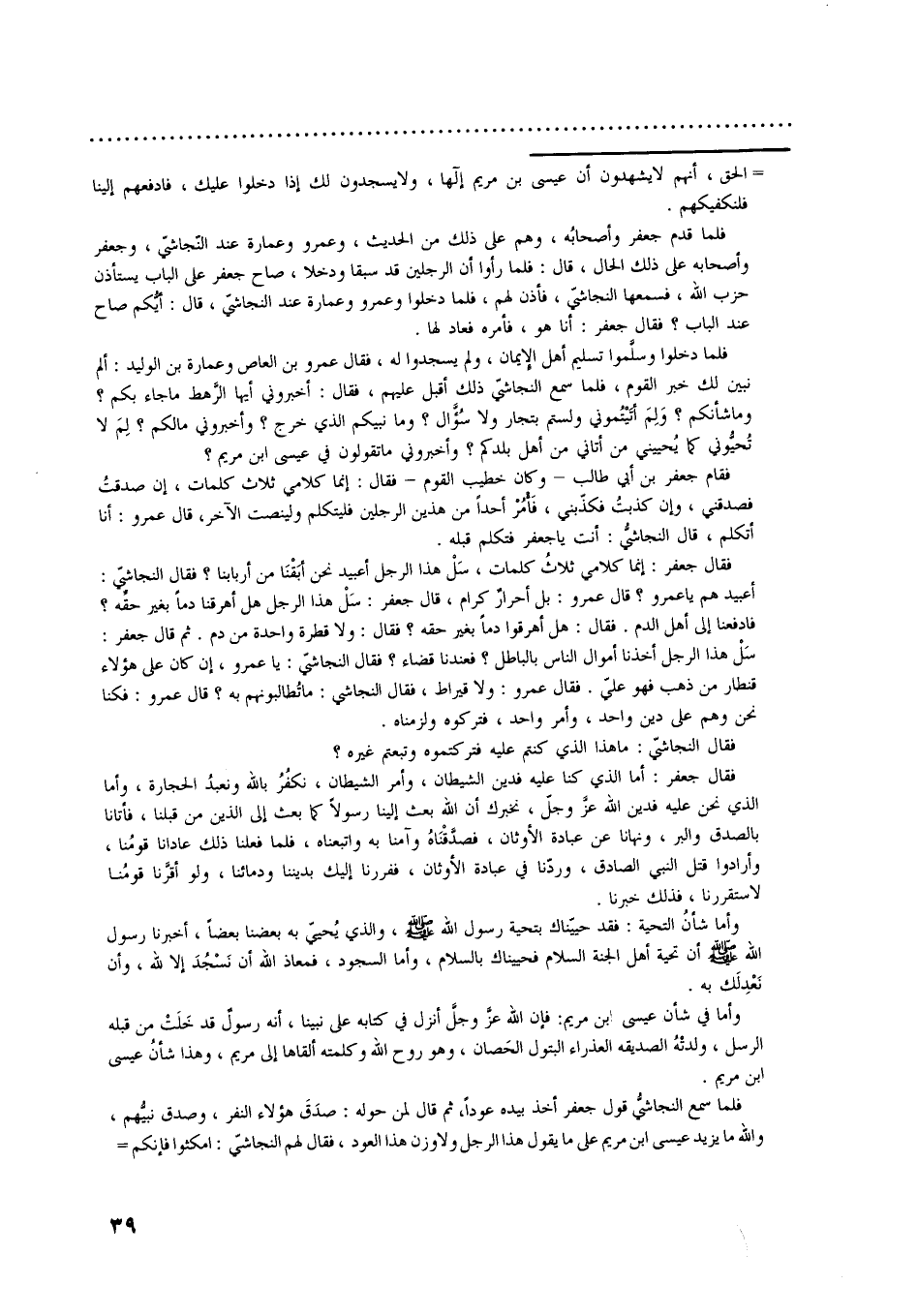 فقال جعفر: إنما كلامي ثلاث كلمات، سل هذا الرجل أعبيد نحن أبقنا من أربابنا؟ فقال النجاشيّ: