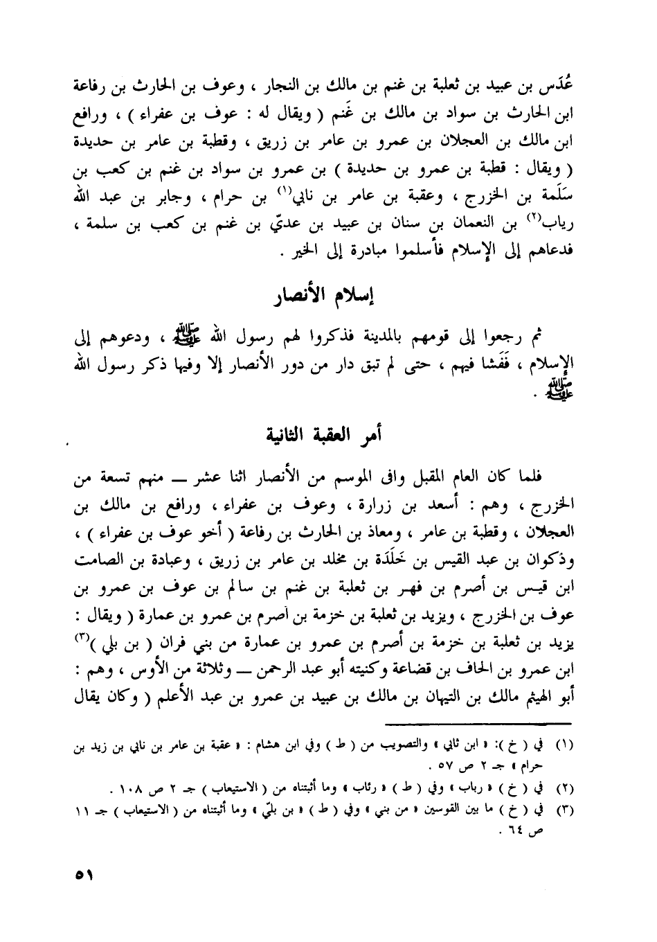 [ (1) ] في (خ) : «ابن ثابي» والتصويب من (ط) وفي ابن هشام: «عقبة بن عامر بن نابي بن زيد بن حرام» ج 2 ص 57.