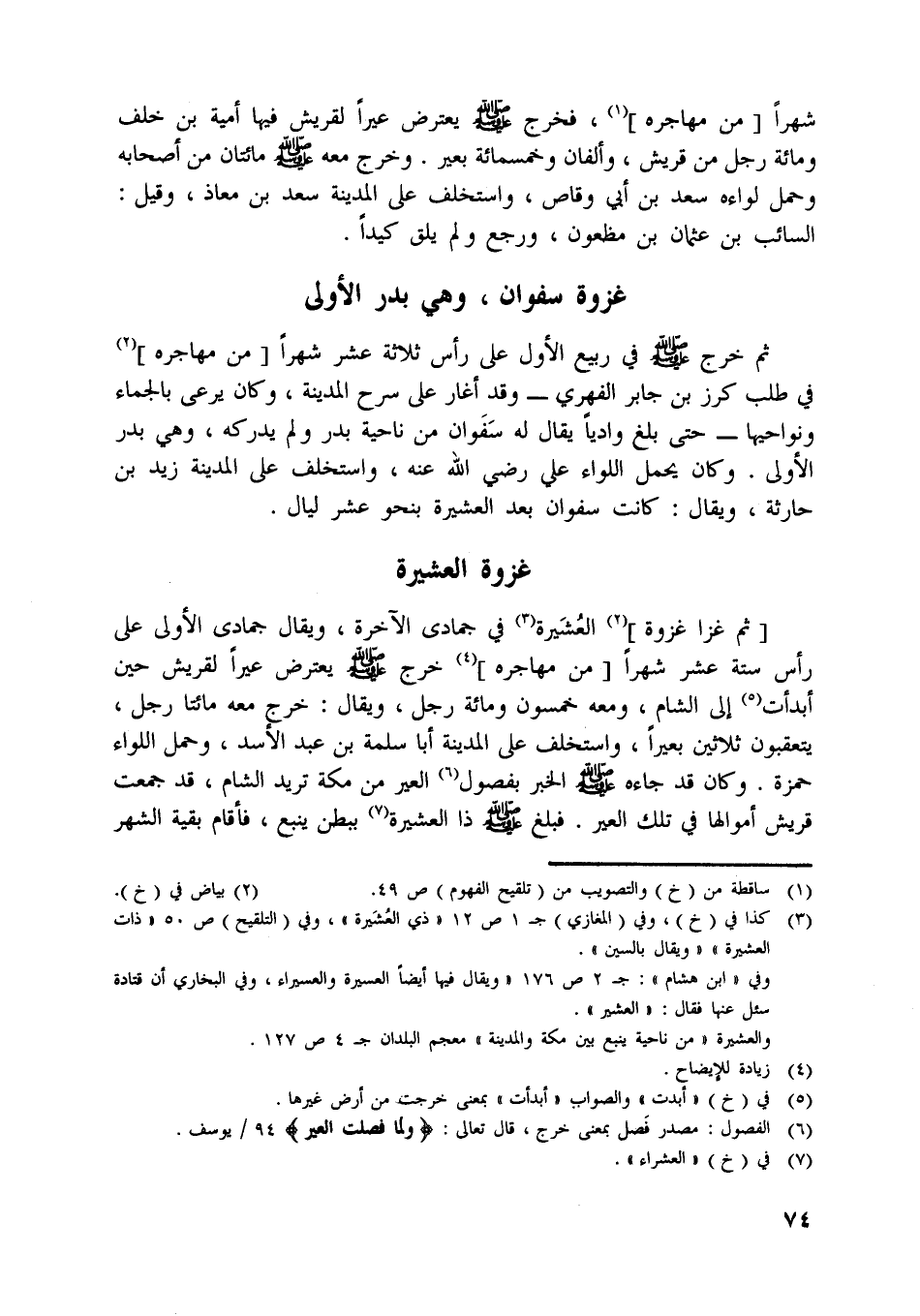 [ (3) ] كذا في (خ) ، وفي (المغازي) ج 1 ص 12 «ذي العشيرة» ، وفي (التلقيح) ص 50 «ذات العشيرة» «ويقال بالسين» .