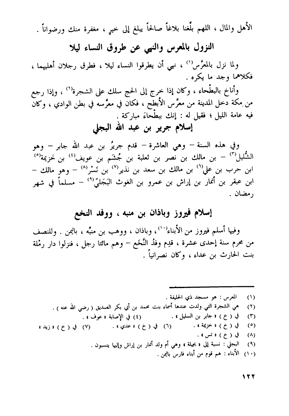 وفيها أسلم فيروز من الأبناء [ (10) ] ، وباذان، ووهب بن منبّه، باليمن. وللنصف من محرم سنة إحدى عشرة، قدم وفد النّخع- وهم مائتا رجل، فنزلوا دار رملة بنت الحارث بن عداء، وكان نصرانيا.