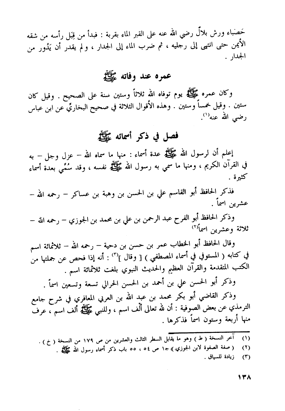 [ (2) ] (صفة الصفوة لابن الجوزي) ج 1 ص 54، 55 باب ذكر أسماء رسول اللَّه صلّى اللَّه عليه وسلّم.