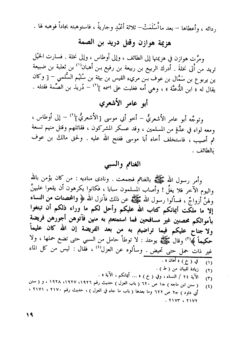 [ (4) ] (سنن ابن ماجة) ج 1 ص 620 (باب العزل) حديث رقم 1926، 1927، 1928، و (سنن أبي داود) ج 2 ص 622 وما بعدها (باب ما جاء في العزل) ، حديث رقم 2170، 2171، 2172، 2173.
