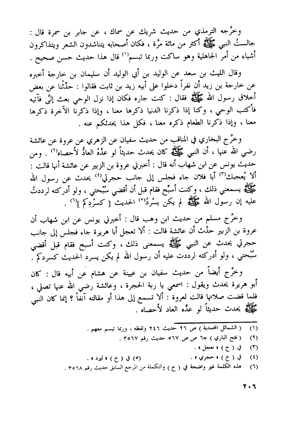 [ (1) ] (الشمائل المحمدية) ص 26 حديث 246 ولفظه، وربما تبسم معهم.