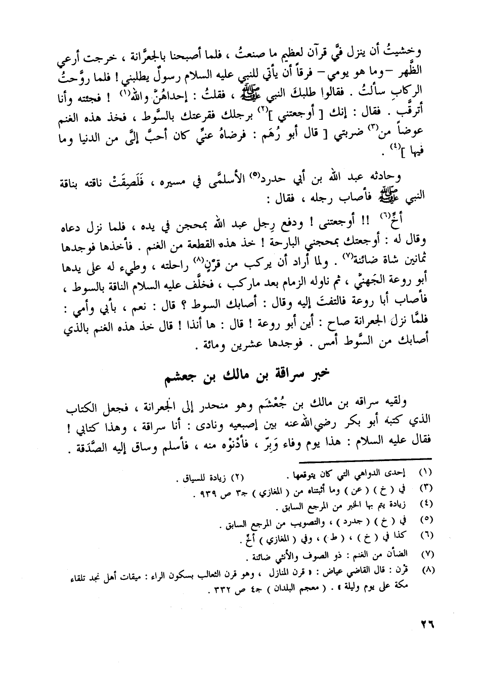 فجئته وأنا أترقّب. فقال: إنك [أوجعتني] [ (2) ] برجلك فقرعتك بالسّوط، فخذ هذه الغنم عوضا من [ (3) ] ضربتي