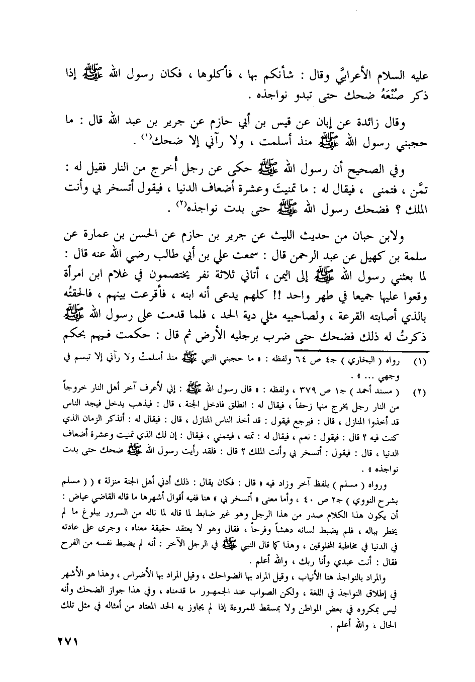[ (1) ] رواه (البخاري) ج 4 ص 64 ولفظه: «ما حجبني النبي صلّى اللَّه عليه وسلّم منذ أسلمت ولا رآني إلا تبسم في وجهي ... » .
