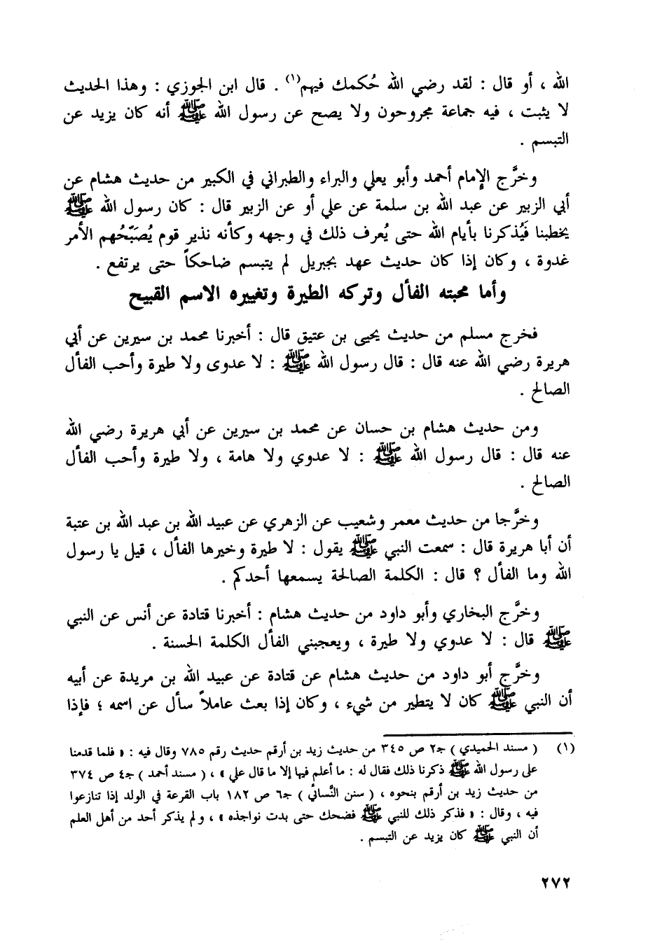 فخرج مسلم من حديث يحيى بن عتيق قال: أخبرنا محمد بن سيرين عن أبي هريرة رضي اللَّه عنه قال: قال رسول اللَّه صلّى اللَّه عليه وسلّم: لا عدوى ولا طيرة وأحب الفأل الصالح.