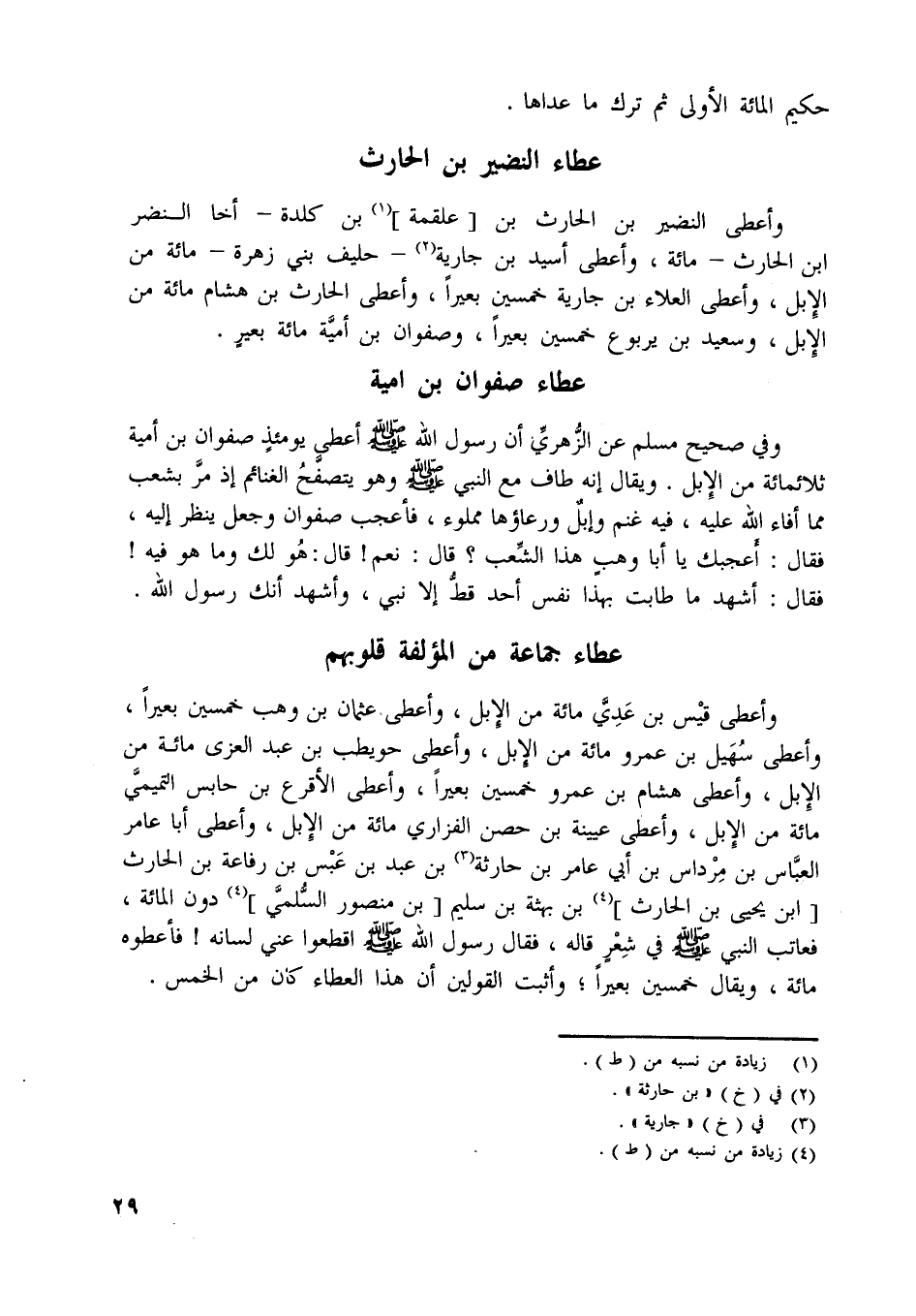وأعطى النضير بن الحارث بن [علقمة] [ (1) ] بن كلدة- أخا النضر ابن الحارث- مائة، وأعطى أسيد بن جارية [ (2) ]- حليف بني زهرة- مائة من الإبل، وأعطى العلاء بن جارية خمسين بعيرا، وأعطى الحارث بن هشام مائة من الإبل، وسعيد بن يربوع خمسين بعيرا، وصفوان بن أميّة مائة بعير.