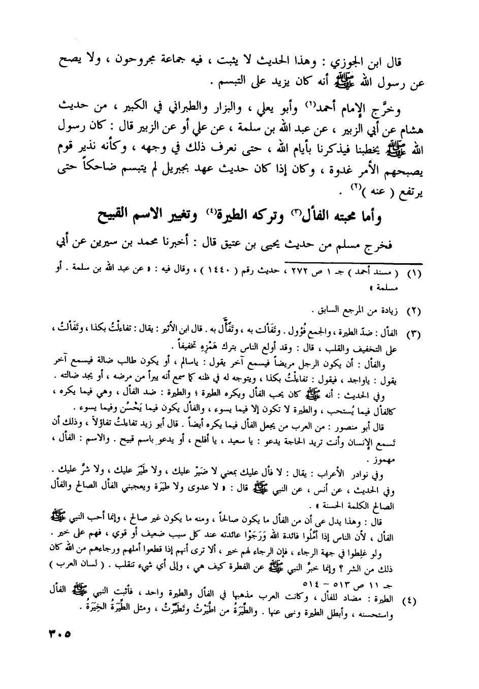 وفي الحديث، عن أنس، عن النبي صلّى اللَّه عليه وسلّم قال: «لا عدوى ولا طيرة ويعجبني الفأل الصالح والفأل الصالح الكلمة الحسنة» .