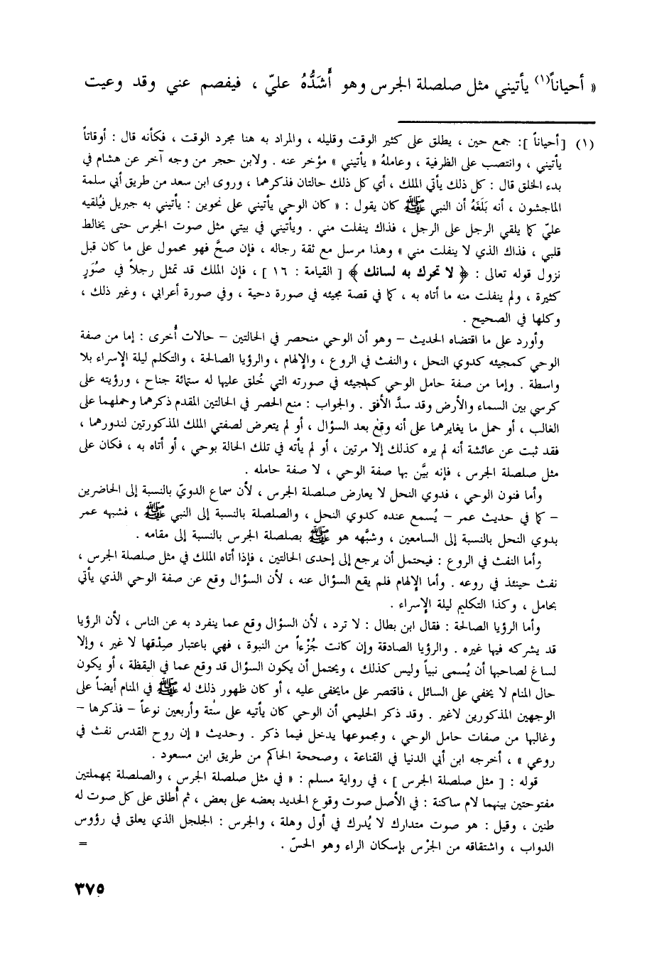 «أحيانا [ (1) ] يأتيني مثل صلصلة الجرس وهو أشدّه عليّ، فيفصم عني وقد وعيت