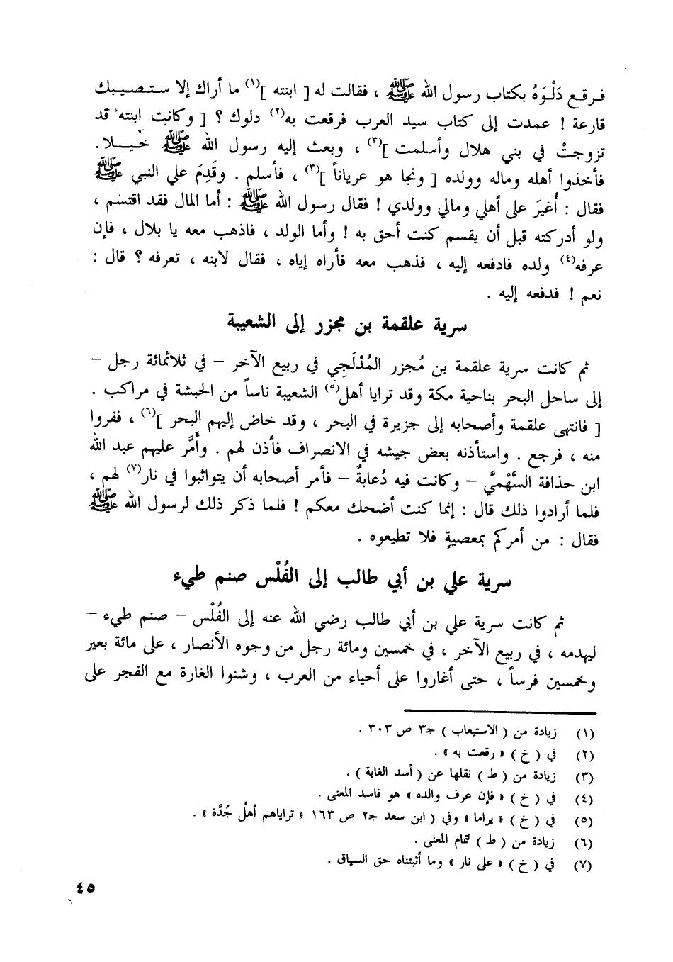 [فانتهى علقمة وأصحابه إلى جزيرة في البحر، وقد خاض إليهم البحر] [ (6) ] ، ففروا منه، فرجع. واستأذنه بعض جيشه في الانصراف فأذن لهم. وأمّر عليهم عبد اللَّه ابن حذافة السّهميّ- وكانت فيه دعابة- فأمر أصحابه أن يتواثبوا في نار [ (7) ] لهم، فلما أرادوا ذلك قال: إنما كنت أضحك معكم! فلما ذكر ذلك لرسول اللَّه صلى اللَّه عليه وسلّم