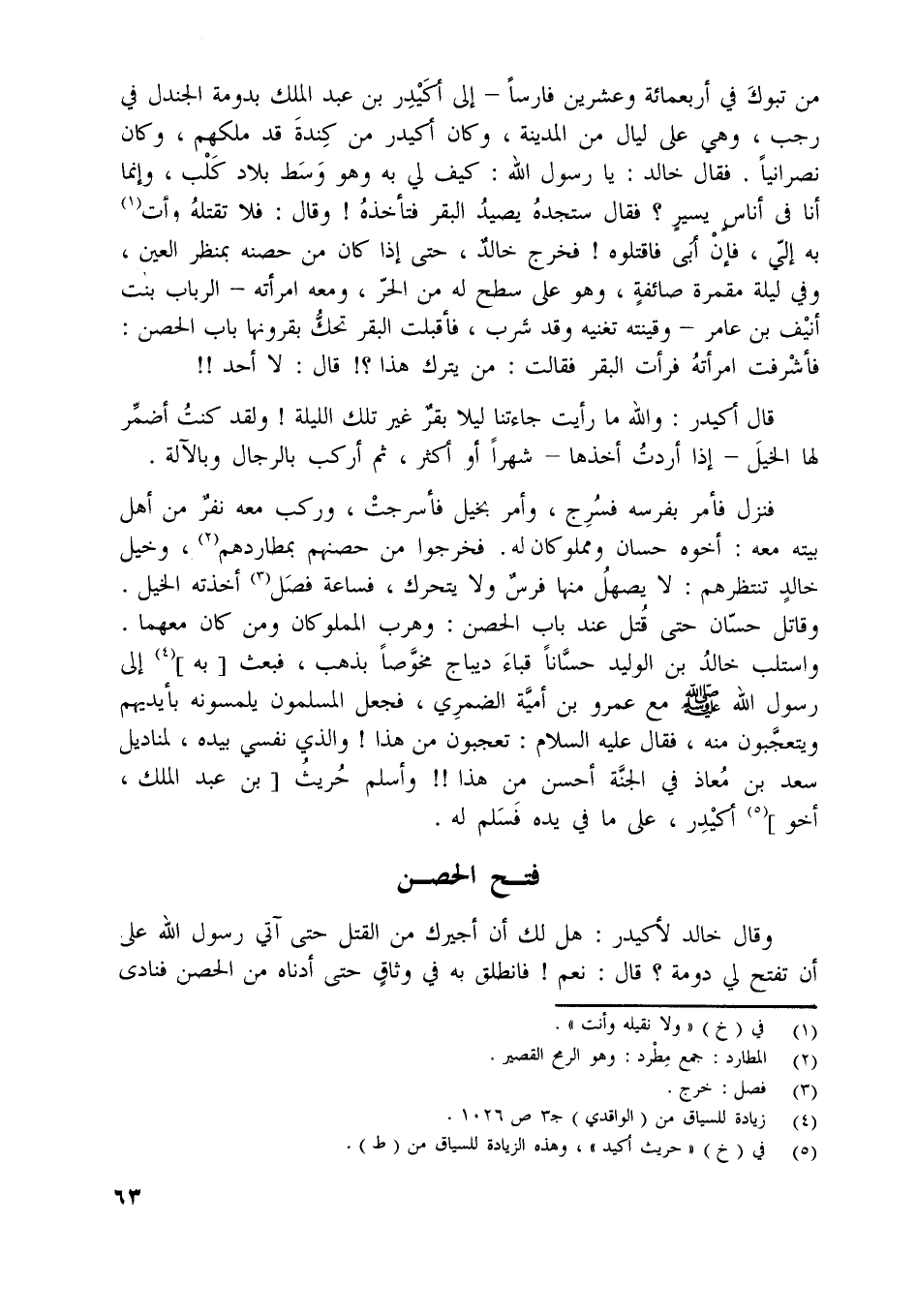 من تبوك في أربعمائة وعشرين فارسا- إلى أكيدر بن عبد الملك بدومة الجندل في رجب، وهي على ليال من المدينة،