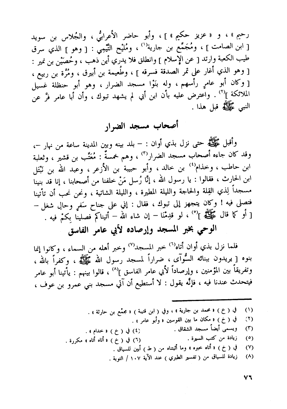 [ (8) ] زيادة للسياق من (تفسير الطبري) عند الآية 107/ التوبة.