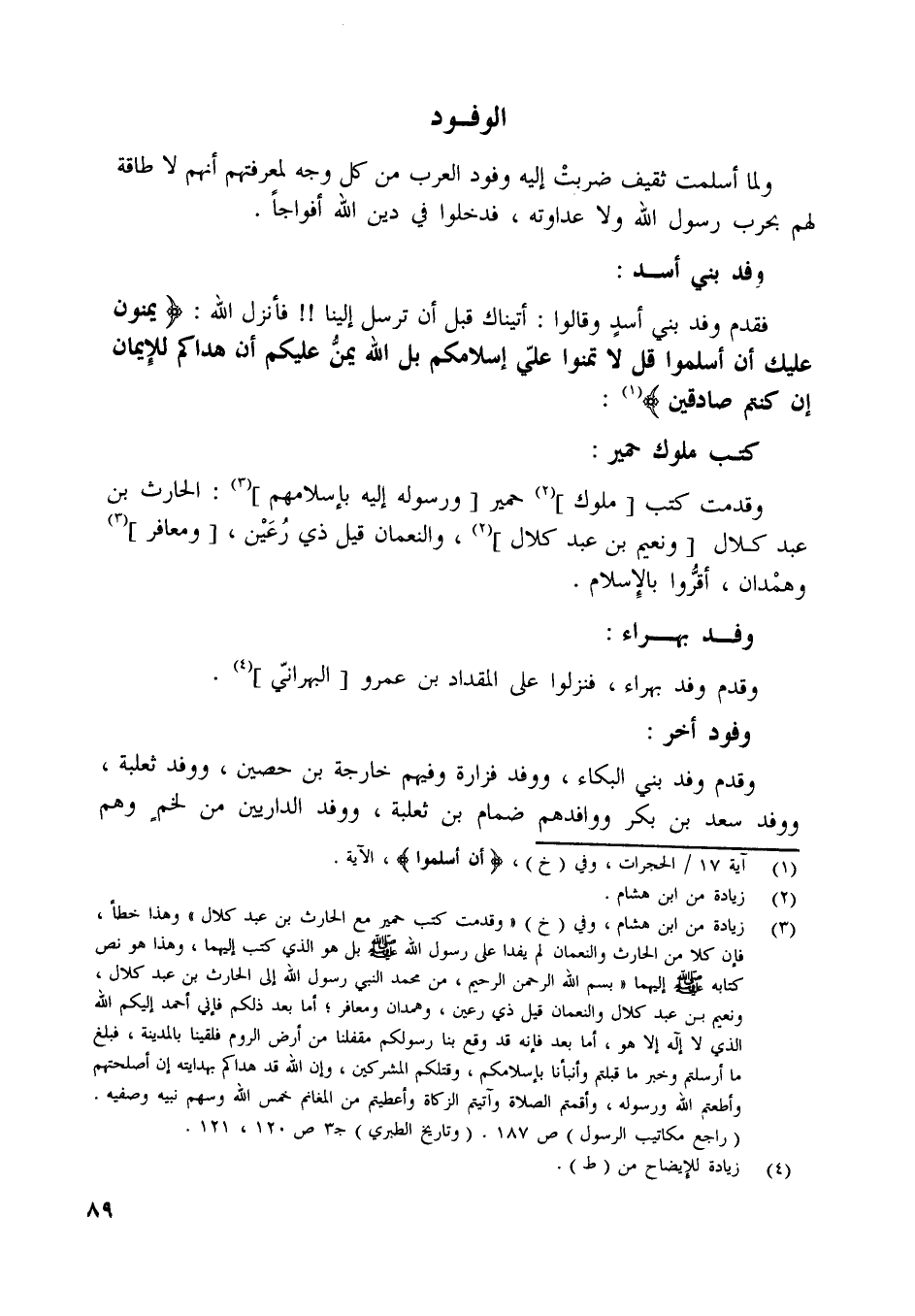 [ (3) ] زيادة من ابن هشام، وفي (خ) «وقدمت كتب حمير مع الحارث بن عبد كلال» وهذا خطأ، فإن كلا من الحارث والنعمان لم يفدا على رسول اللَّه صلّى اللَّه عليه وسلّم بل هو الّذي كتب إليهما،