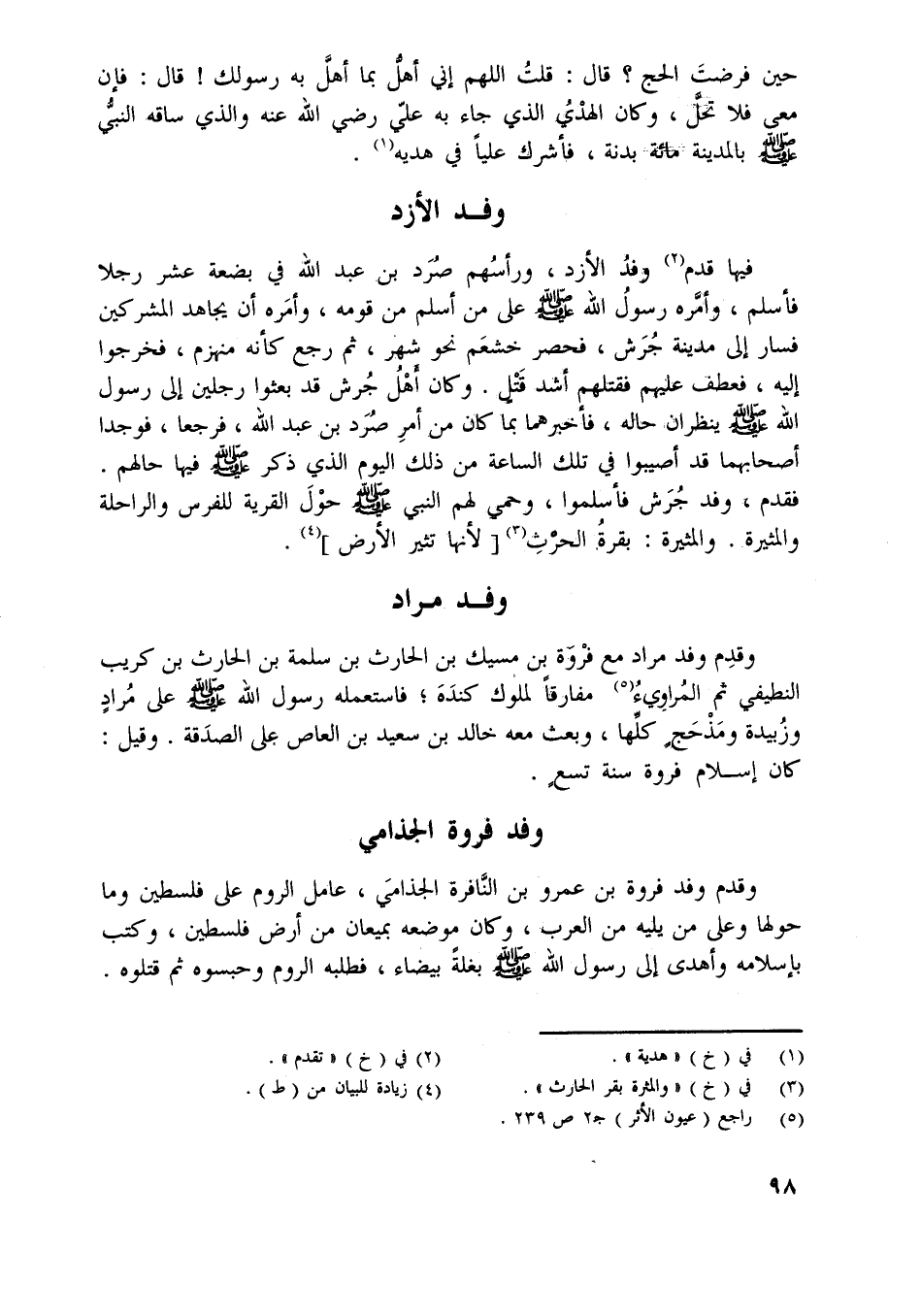 وقدم وفد مراد مع فروة بن مسيك بن الحارث بن سلمة بن الحارث بن كريب الغطيفي ثم المرادي [ (5) ] مفارقا لملوك كندة، فاستعمله رسول اللَّه صلّى اللَّه عليه وسلّم على مراد وزبيدة ومذحج كلّها، وبعث معه خالد بن سعيد بن العاص على الصدقة. وقيل: