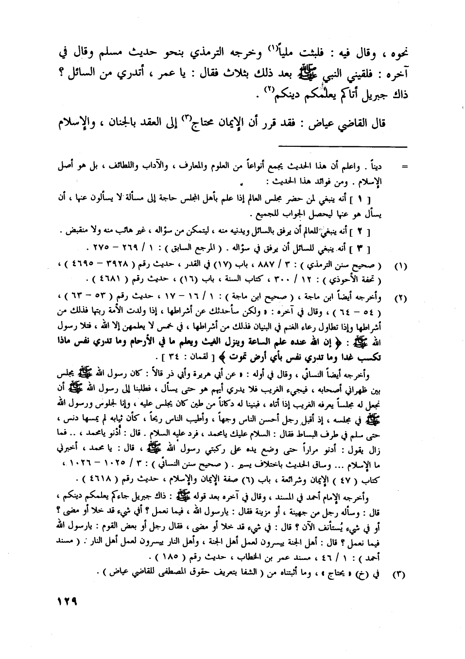 قال القاضي عياض: فقد قرر أن الإيمان محتاج [ (3) ] إلى العقد بالجنان، والإسلام
