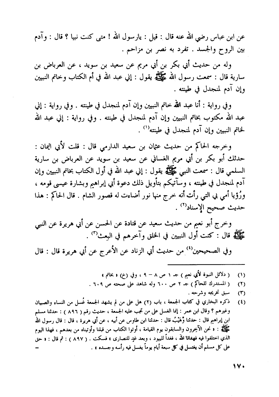 وفي رواية: أنا عبد اللَّه خاتم النبيين وإن آدم لمنجدل في طينته. وفي رواية: إني عبد اللَّه مكتوب بخاتم النبيين وإن آدم لمنجدل في طينته. وفي رواية: إني عبد اللَّه لخاتم النبيين وإن آدم لمنجدل في طينته [ (1) ] .