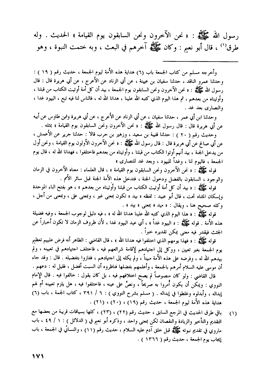 رسول اللَّه صلى اللَّه عليه وسلّم: «نحن الآخرون ونحن السابقون يوم القيامة»