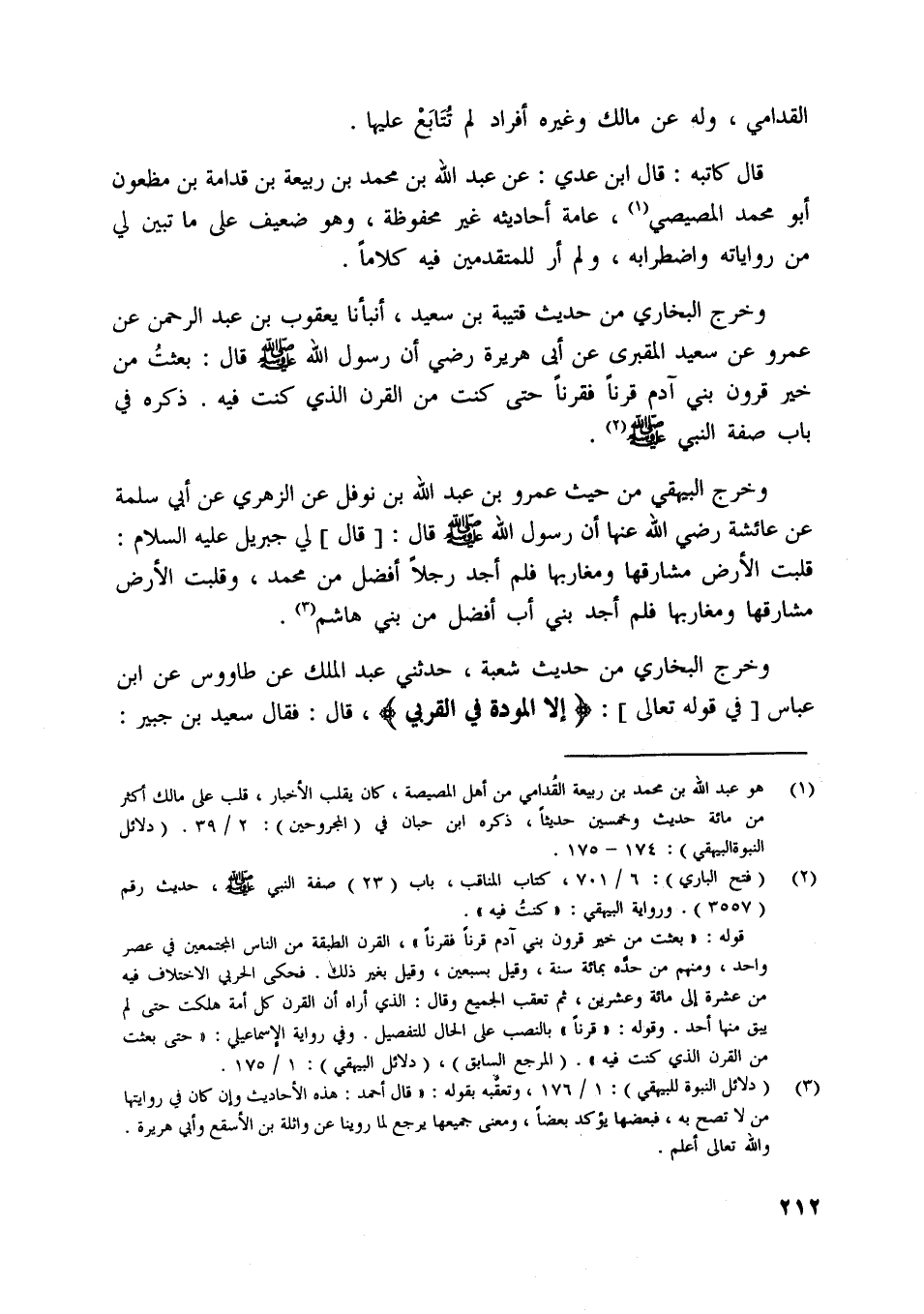 وخرج البخاري من حديث قتيبة بن سعيد، أنبأنا يعقوب بن عبد الرحمن عن عمرو عن سعيد المقبري عن أبي هريرة رضي أن رسول اللَّه صلى اللَّه عليه وسلّم قال: بعثت من خير قرون بني آدم قرنا فقرنا حتى كنت من القرن الّذي كنت فيه. ذكره في باب صفة النبي صلى اللَّه عليه وسلّم [ (2) ] .