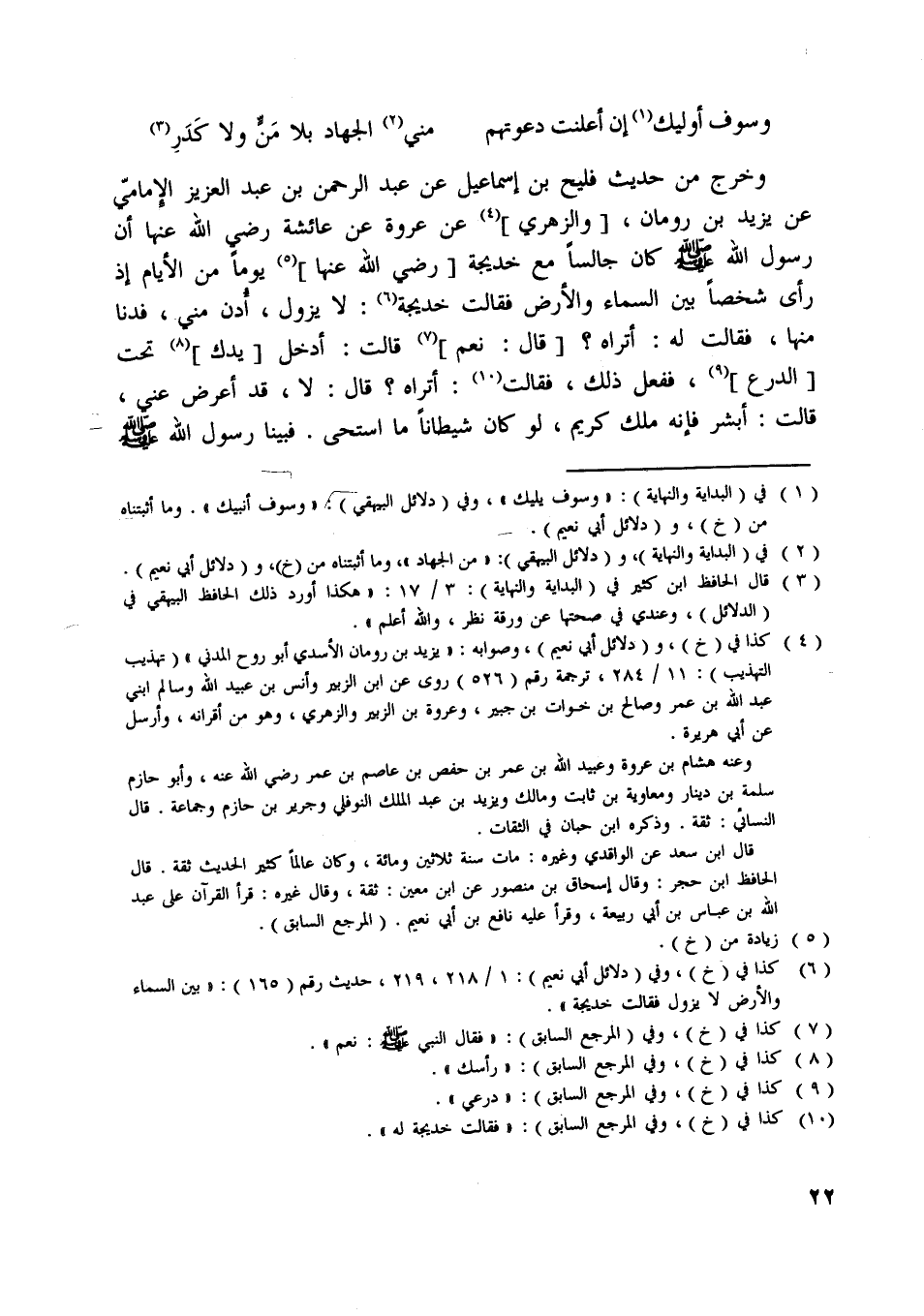 [ (3) ] قال الحافظ ابن كثير في (البداية والنهاية) : 3/ 17: «هكذا أورد ذلك الحافظ البيهقي في (الدلائل) ، وعندي في صحتها عن ورقة نظر، واللَّه أعلم» .