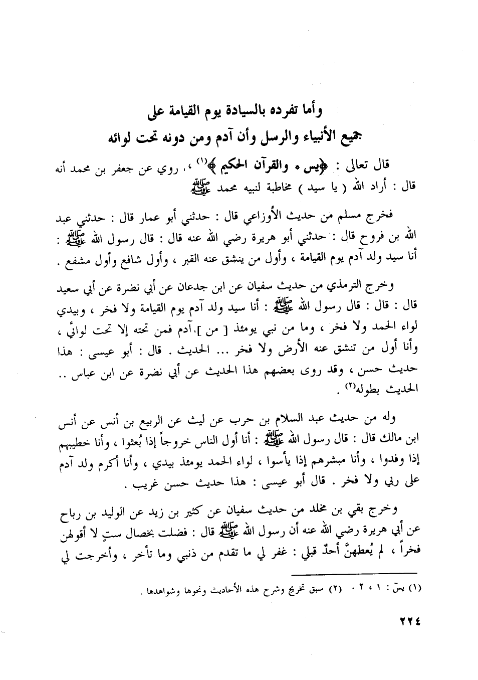 وأما تفرده بالسيادة يوم القيامة على جميع الأنبياء والرسل وأن آدم ومن دونه تحت لوائه