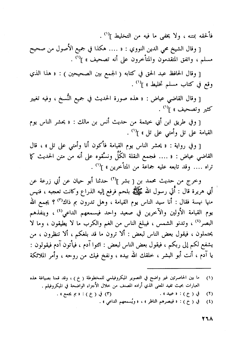 [ (1) ] ما بين الحاصرتين غير واضح في التصوير الميكروفيلمي للمخطوطة (خ) ، وقد قمنا بصياغة هذه العبارات بحيث تفيد المعنى الّذي أراده المصنف من خلال الأجزاء الواضحة في الميكروفيلم.