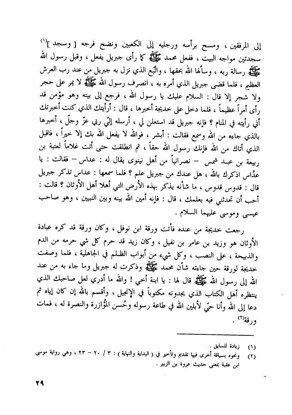 [ (2) ] ونحوه بسياقة أخرى فيها تقديم وتأخير في (البداية والنهاية) : 3/ 20- 23، وهي رواية موسى ابن عقبة بمعنى حديث عروة بن الزبير.