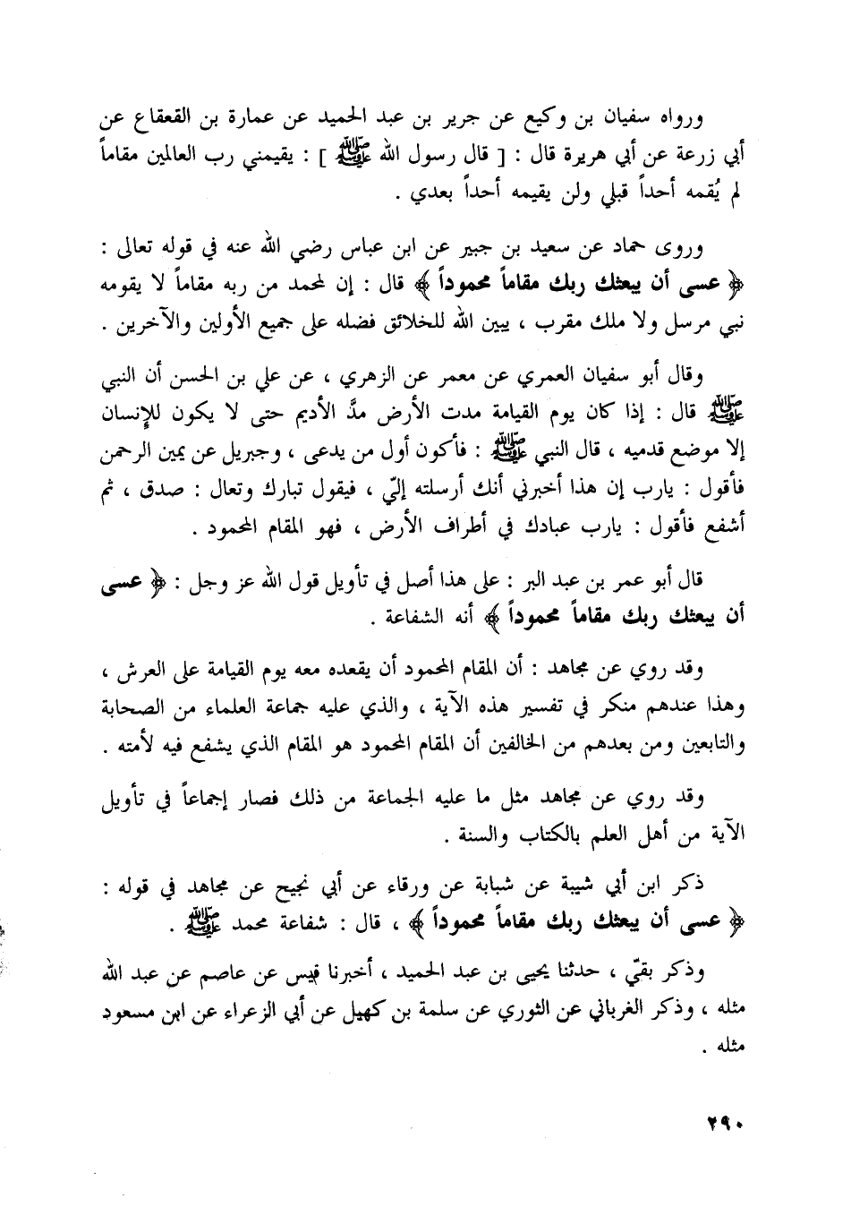 قال أبو عمر بن عبد البر: على هذا أصل في تأويل قول اللَّه عز وجل: عَسى أَنْ يَبْعَثَكَ رَبُّكَ مَقاماً مَحْمُوداً أنه الشفاعة.