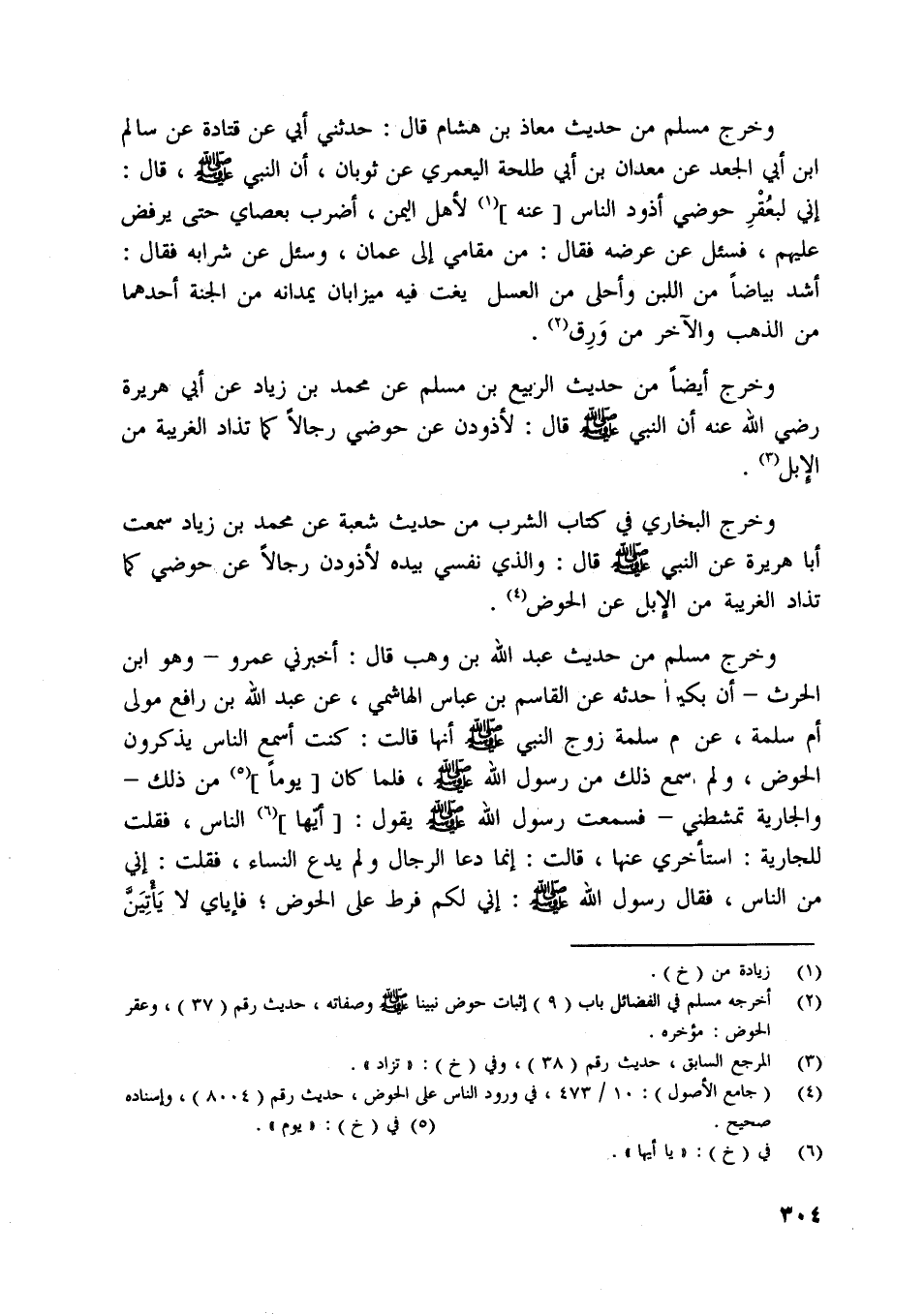 [ (4) ] (جامع الأصول) : 10/ 473، في ورود الناس على الحوض، حديث رقم (8004) ، وإسناده صحيح.