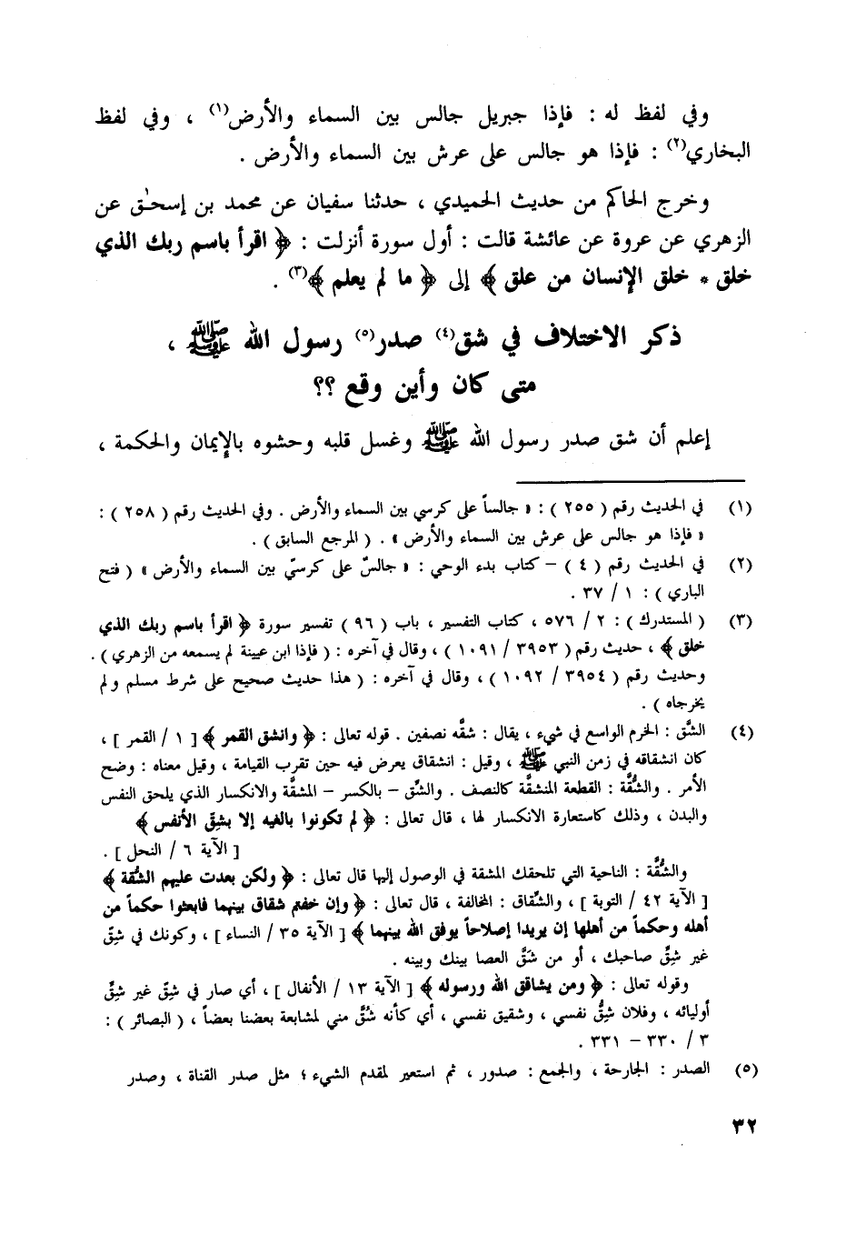 ذكر الاختلاف في شق [ (4) ] صدر [ (5) ] رسول اللَّه صلّى اللَّه عليه وسلّم، متى كان وأين وقع؟